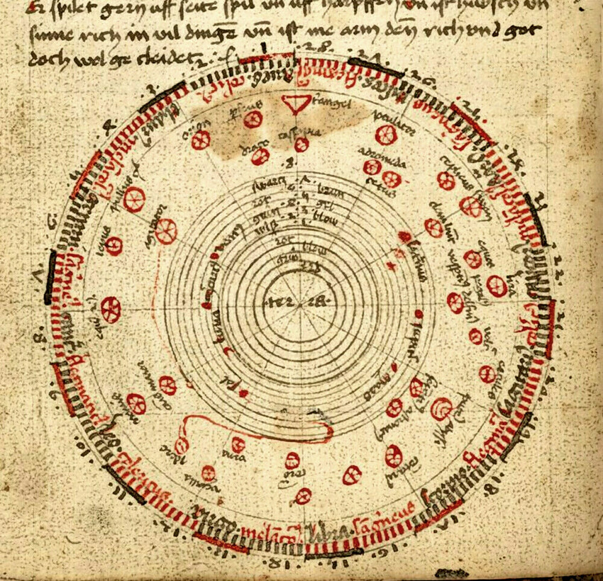 The Tubingen Hausbuch also includes diagrams of the constellations arranged according to the zodiac (also here shown counterclockwise). The constellations are split into two different circles for You are not allowed to view links.