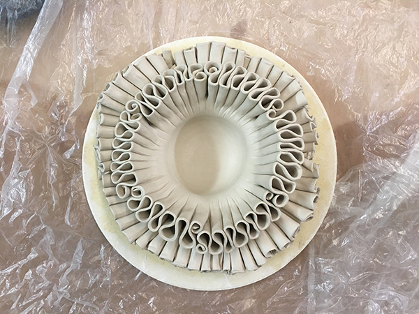 Lately I've started making some porcelain sculptures of Voynich "pools"--this is the first stage, before the porcelain has been fired. Later they will be filled with green epoxy resin and porcelain nymphs.