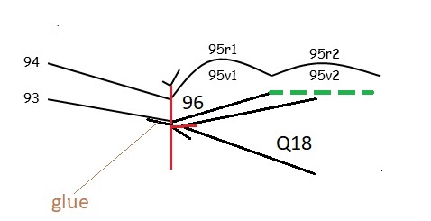 Wladimir suggests that there is the trace of the foldout close to the outer edge of f96 which suggests that the outer page was cut out from what had initially been a foldout. This idea is corroborated with the fact that the number 96 is written by a different hand - which would be the case when the pagination needs to be restored.