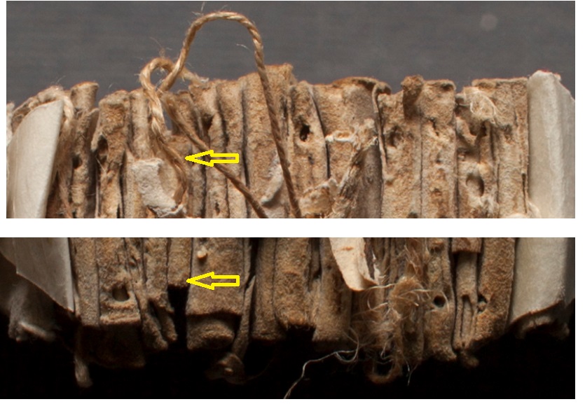I took a closer look at your pictures. Not directly the binding, but the edges of the parchment pages.