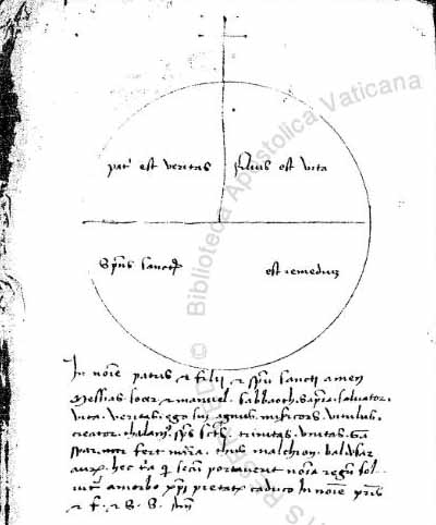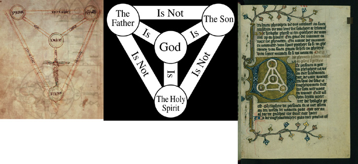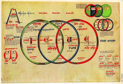 Left, Scutum Fidei (Shield of Trinity) Manuscrito Cotton Faustina,3 ca. 1210