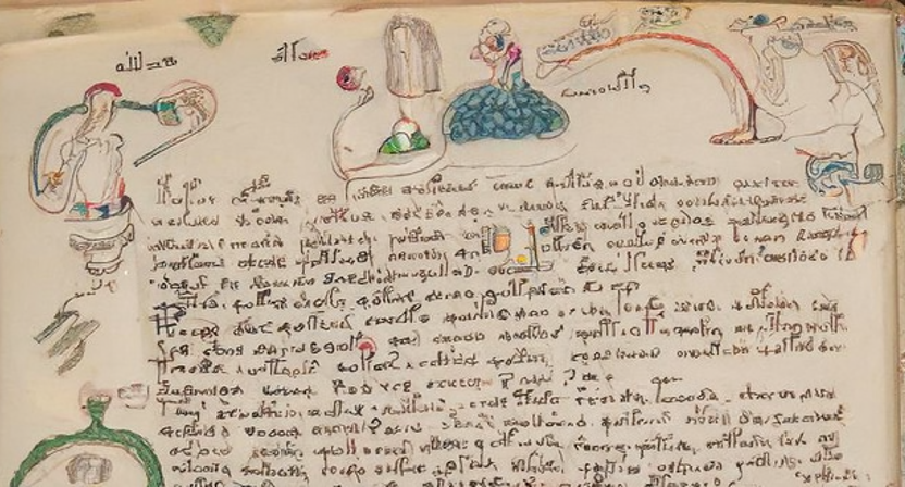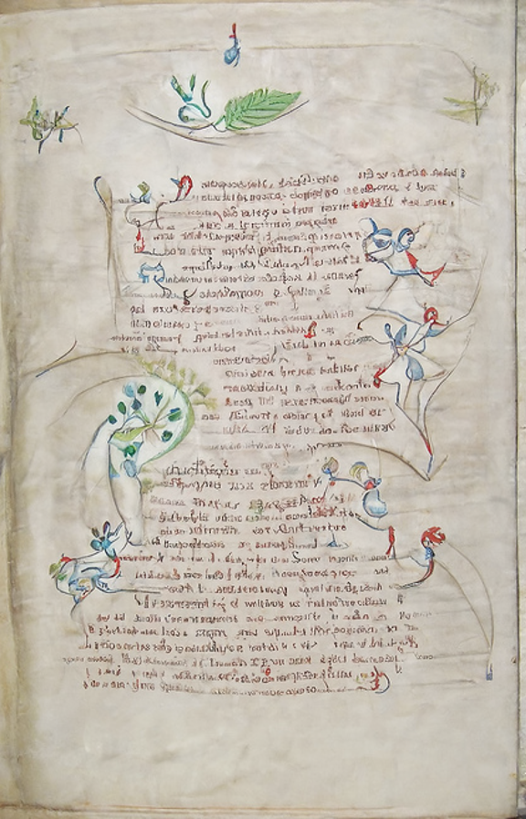 0: ["A page from the Voynich manuscript", "illuminated medieval manuscript"],