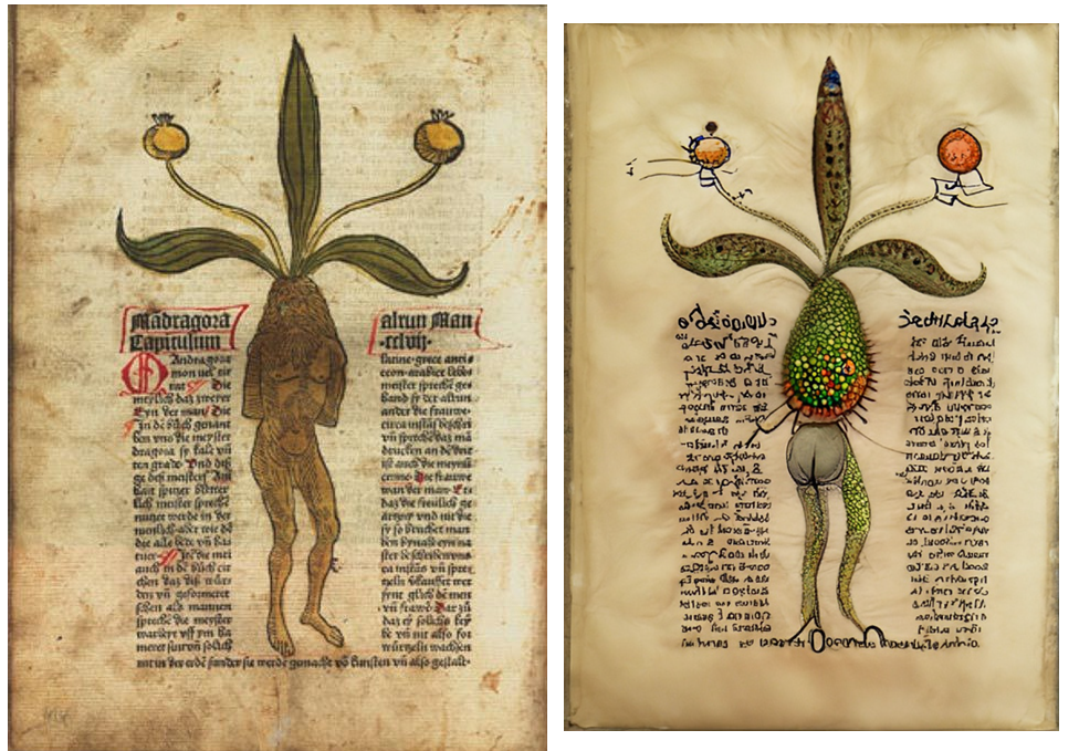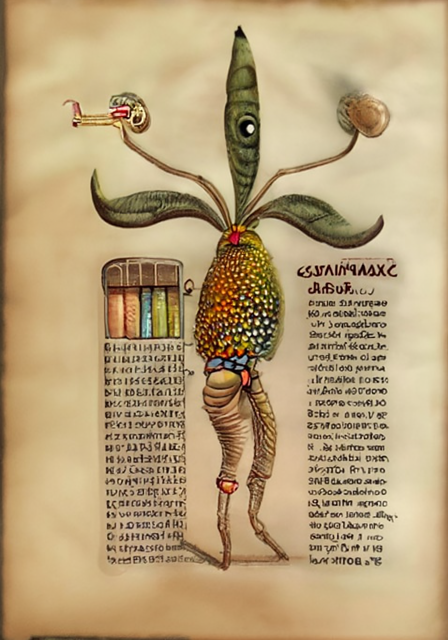 (18-05-2022, 05:09 PM)bi3mw Wrote: You are not allowed to view links. Register or Login to view.A mandrake with Codex Seraphinianus in the prompt.