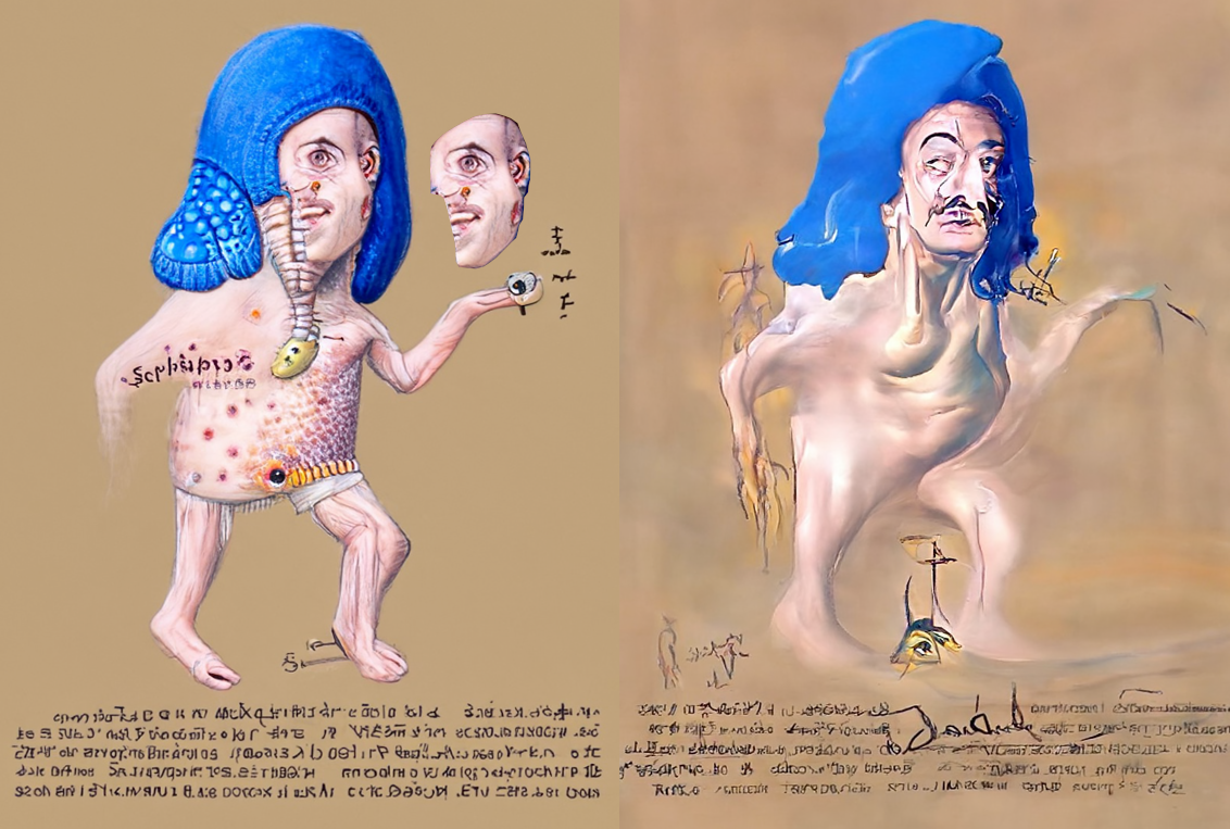 On my observations, this AI not quite well works with images of humans and animals, if it works not from the noise, but from the halfway, when it has some blur initial image. It is strange, I thought, the initial lines and shapes help AI to generate images. In reality, it works better from the full noise with detailed prompts especially pointing to an artist or artists, but in this case the result will be an absolute surprise. Trying to make a dog a beautiful painting in different stiles, I was really disappointed, as AI made him some strange mutilated beast.