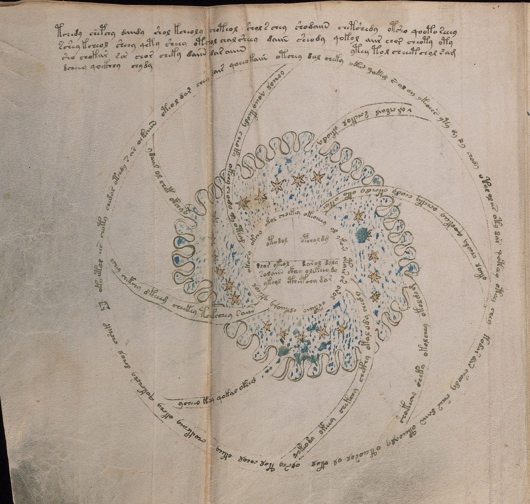 What the VMs artist has done is to place a simplified *Parisian* cosmic structure inside the Shirakatsi Moon Wheel. It's clearly a scientific non-sequitur for any reader who was well informed about the "science" of the early 1400s, but it has taken modern investigators a great deal of time and some significant effort just to recover those same bits of information - to identify the inverted T-O Earth, to see the field of polygonal stars, to name the nebuly line that serves as a cosmic boundary, and to recognize Shirakatsi's wheel - as it all relates to the VMs.