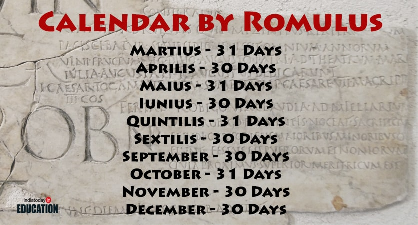 Quote:The first known Roman calendar had ten months of thirty or thirty-one days, and a variable length unnamed winter period. The months were Martius, Aprilis, Maius, Iunius, Quintilis, Sextilis, September, October, November, and December. They’re named after Mars, Aphrodite, Maia and Juno, followed by numbered months, five to ten.