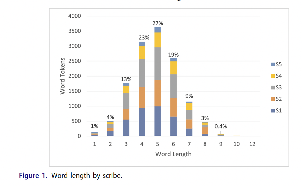 Login to view.). The paper states that "A few manipulations of specific characters helped perform computer-based statistical analyses." and that "a comma, or an uncertain word space, was removed from the file before any analyses were performed."