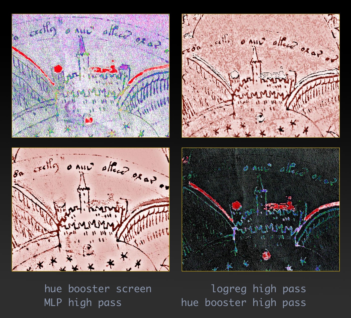 But overall, none of the techniques I tried was able to recover all of the obvious overpainted inscriptions, so the truth is out there.[attachment=9650]