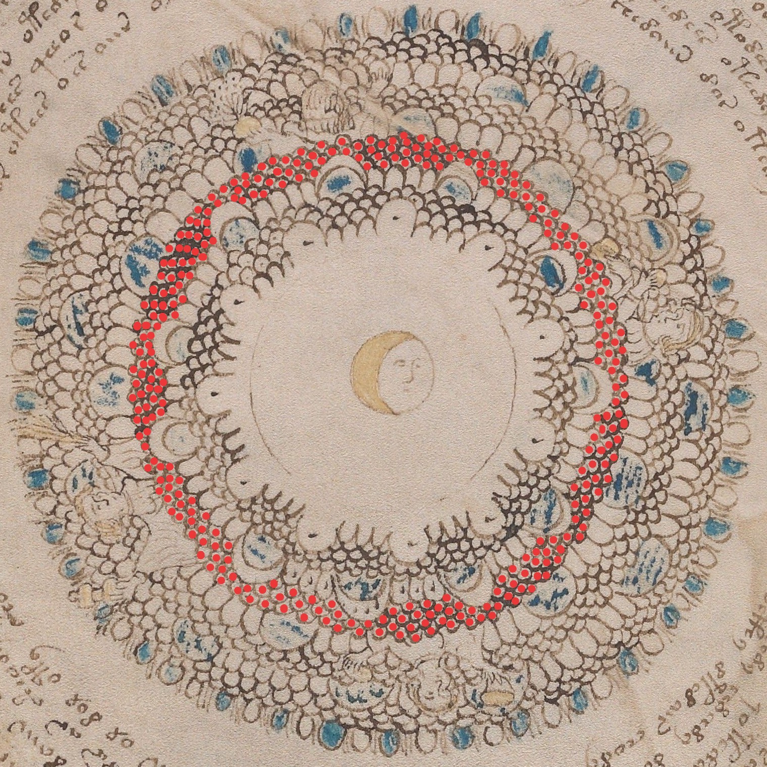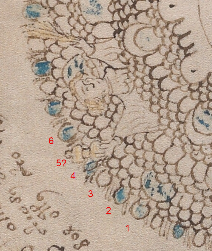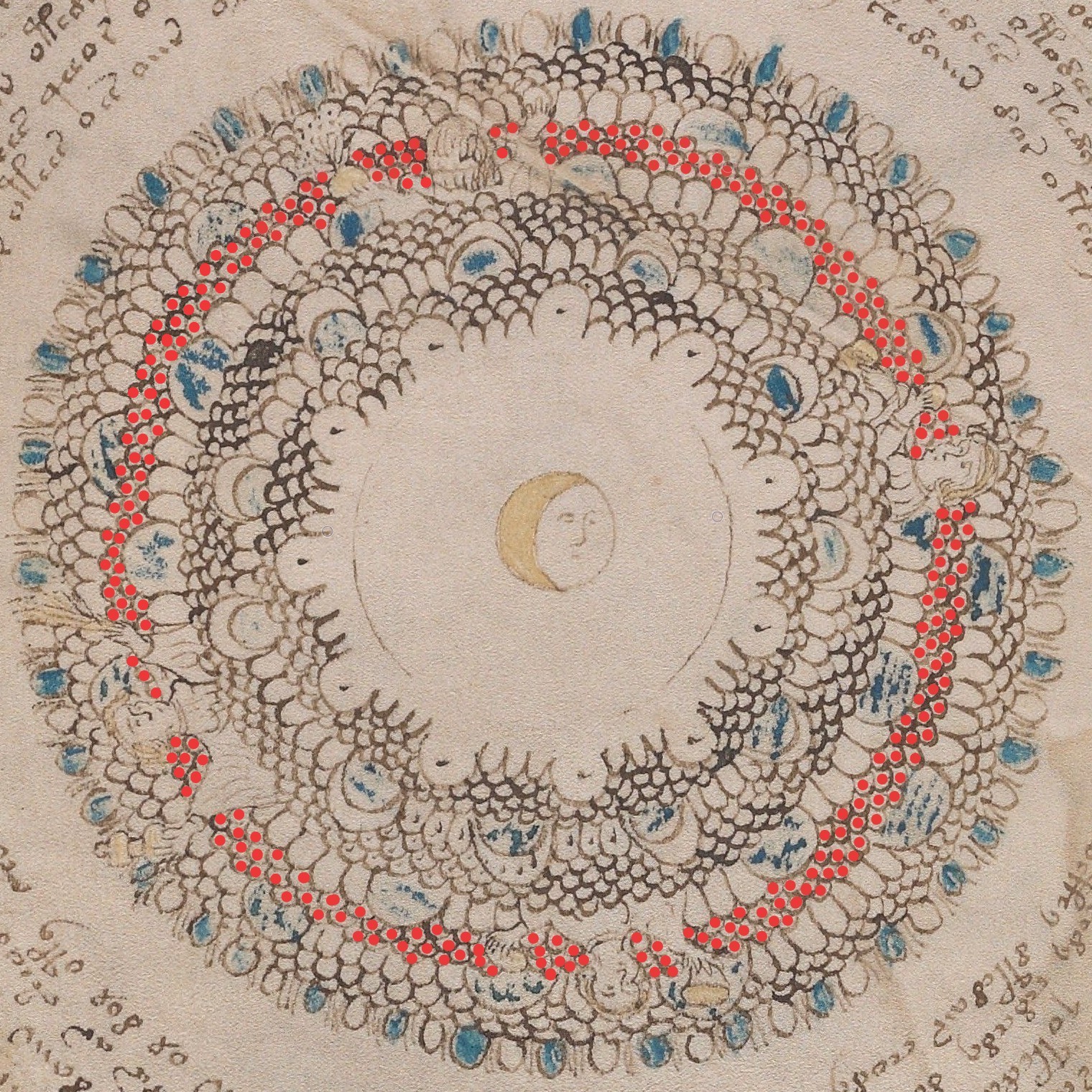 There probably are at least 280 small bumps in the 6th layer from the top of the roundel in the lunar folio (shown as red spots).