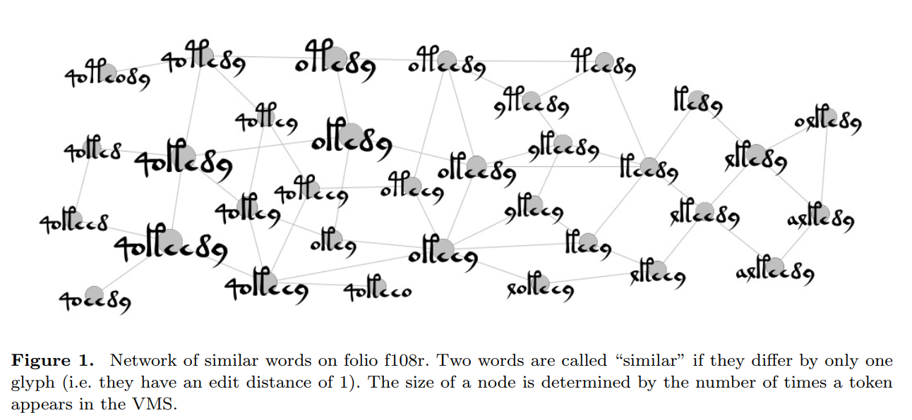 Login to view. (restricted to their 33 most similar tokens), gives a first impression of an existing deep correlation between frequency, similarity, and spatial vicinity of tokens within the VMS text (cf. Figure 1). Note that besides the aforementioned top-frequency tokens also words like <otedy>, <qokeey>, <okeey>, <qokey>, <qotedy>, and also <okeedy> enter the You are not allowed to view links.