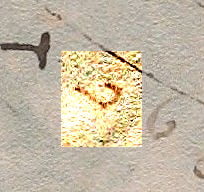 The first Retracer was very careful on the text, covering almost completely the original strokes of the glyphs -- almost, but not totally. On some glyphs, one can see parts of the original sticking out from under the retraced version. Often he retraced only part of a glyph, or only a glyph or two of a word.