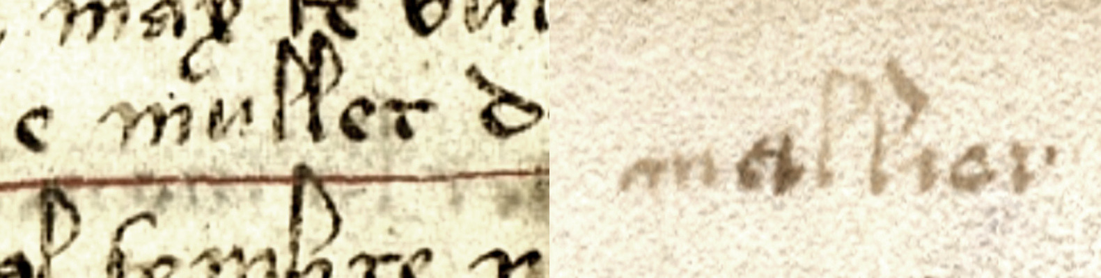 Yes, I've see the "muller" and the "g" that look a bit like in the Voynich MS. There are also de double "r" that look simmilar to the MS "cc"...