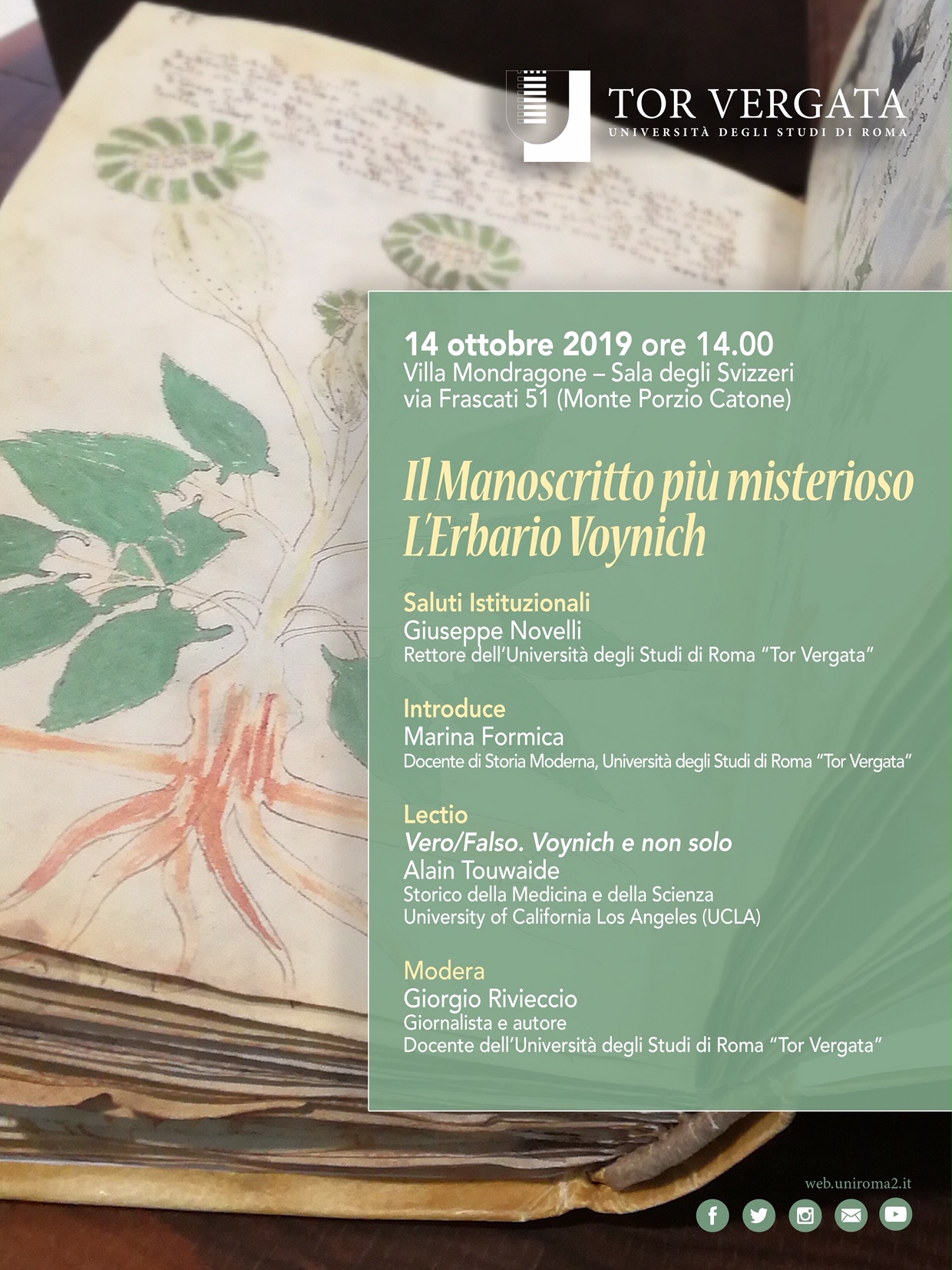 For those who are in or near Rome in the middle of October, there is a presentation about the Voynich MS by Alain Touwaide in the Villa Mondragone, on 14 October starting at 2 PM:
