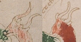 In both cases, it is the first animal that has a poorly drawn head, and the second one looks a lot better. Maybe the "senior" artist saw what had been done in the first Aries and Taurus, and seeing how awful they were, stepped in to finish the second ones?