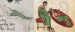 While searching for older templates for the VMS, I came across Ms. Plut. 73.16. What was striking was the rough structure in the depictions of plants (which can also be found in older illustrations by Dioscorides, for example). In addition, however, there are multiple depictions of patients lying down during treatment. This would be a new interpretation of the illustration on folio f82r. Furthermore, there is a strange pipeline that allows water (?) to run over a plant.