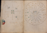 In the nautical travel information section we find a lot of circles with stars and compass roses. The compass roses have a typical wind god face in the middle which indicates in which direction the wind blows typically in east direction (shown by the direction of the face). This is absolut typical for Portugal around 1400. We found a very similar face in the compass rose of the well known Cantino_planisphere You are not allowed to view links. Register or Login to view. . Which was stolen by "Italy" from Portugal around 1500.