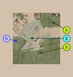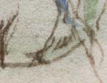 The Painter who applied the semi-opaque tempera colors often painted over inked outlines. Examples are easily seen where these inked strokes were still dark and clear, like (A,B) below.
