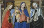 It is not always clear if works are of St Catherine of Alexandria or St Catherine of Siena, they share a name and story, in so much that they were wed to (the often infant) Jesus. St Catherine of Alexandria can be picked out by images of a broken wheel and sword, though they are not always used.