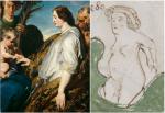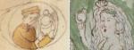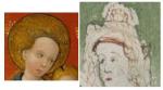 3. Is the left lady wearing a crown + halo (or such). Obviously it's impossible to say, but I think there's some stylistic similarities