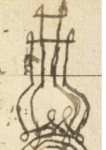 This clearly looks like the Voynichese character "H", or some prototyical form of it. There's also something that closely ressembles the multi-ornaments on some of the gallows: