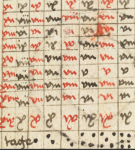 Or at least some kind of mirrored version. Then there's some kind of coded table with symbols that I haven't seen in contemporary manuscripts, maybe some kid of astrological or esoteric character set?