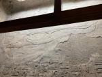 In this carving 6 females face right towards the crocodile god Sobek while behind them 6 male figures face left towards the sun god Amoun Ra.
